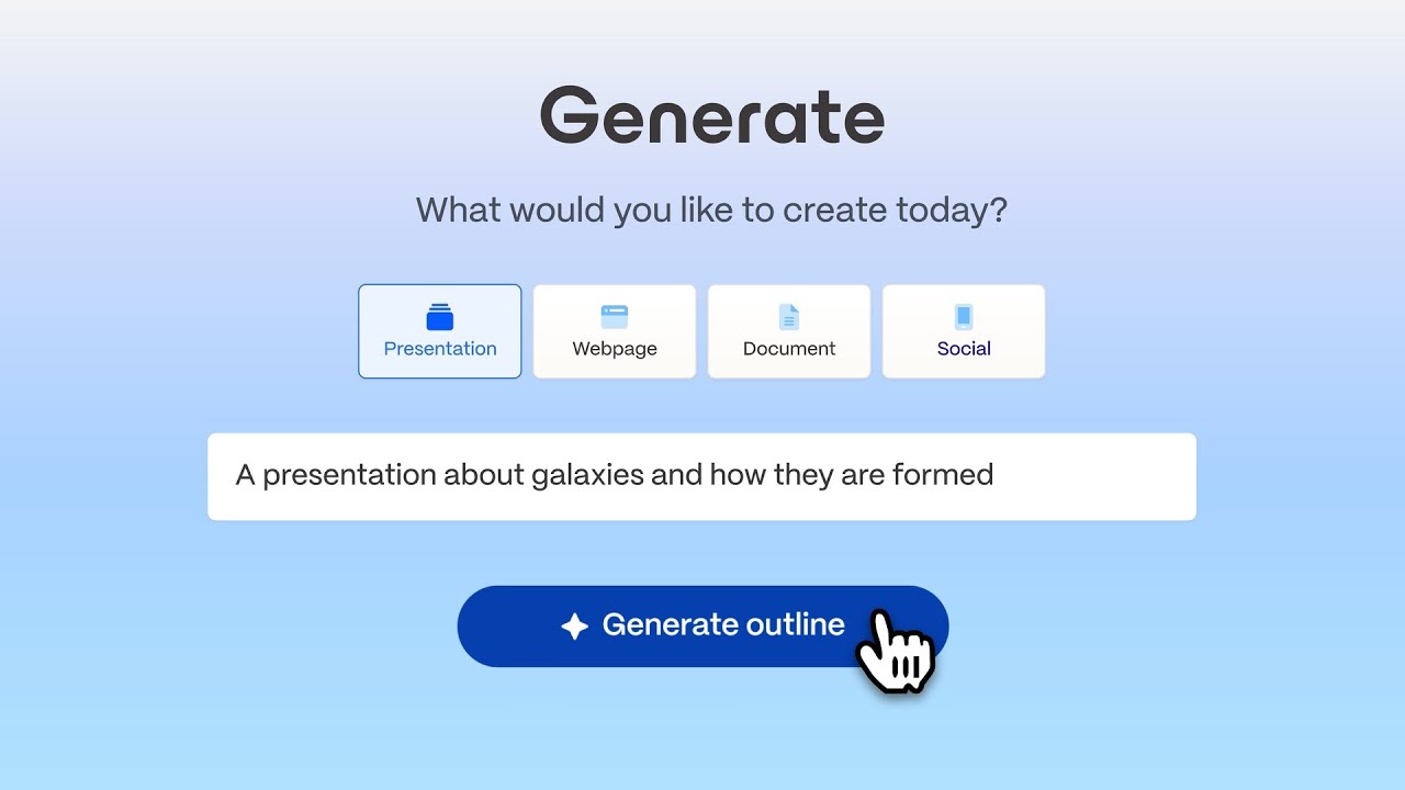 Việc tạo một bài thuyết trình với Gamma AI trở nên cực kỳ đơn giản và nhanh chóng: