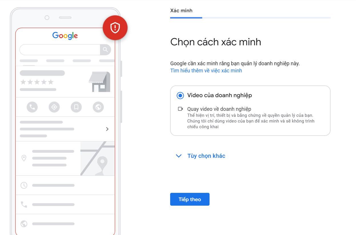 Google cung cấp nhiều phương pháp xác minh, tùy thuộc vào danh mục, thông tin công khai, khu vực và giờ làm việc: